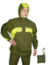 Для походов с рюкзаком в ненастную погоду. Дождевик-накидка с капюшоном, закрывающая от дождя человека с большим рюкзаком. В растянутом виде является тентом, под которым можно укрыться от непогоды и переночевать.